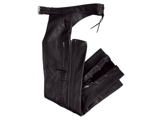 Chap Uomo Deluxe Harley Davidson DESCRIZIONE PRODOTTO Chaps in pelle Harley-Davidson® da uomo Bar & Shield Stock. I Chaps in pelle da uomo Stock sono un capo essenziale e iconico del guardaroba Harley-Davidson®. Pelle di prima qualità di medio peso. Gli orli sono tagliabili fino a 15 cm, per personalizzare la lunghezza. Le cuciture interne dei Chaps sono circa 5 cm più corte dello standard. Cuciture interne  Chiusura con fibbia e allacciatura posteriore regolabile
