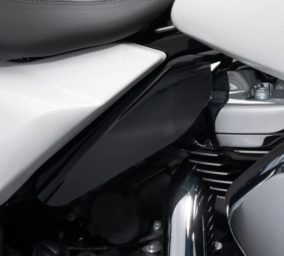 I nuovi deflettori d’aria per telaio intermedio in Lexan fumé migliorano sia lo stile che il comfort. Si adatta perfettamente al telaio e alla fiancata della Harley-Davidson® Touring