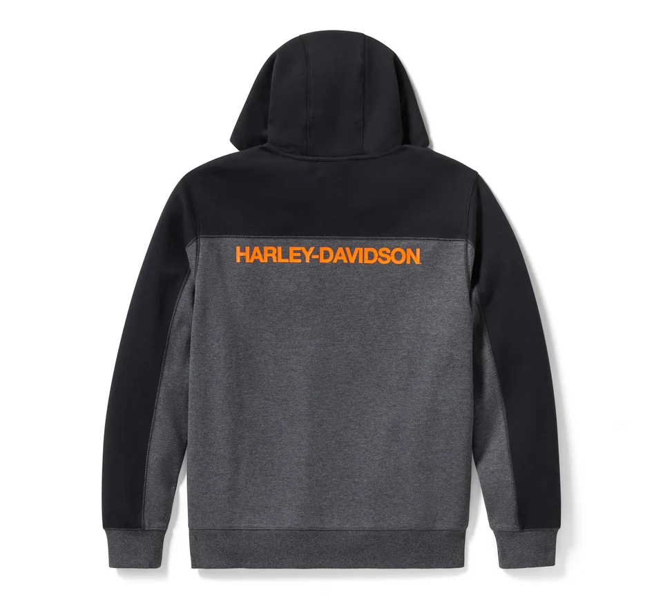 Lo scaldacollo H-D® TECH aggiunge vivacità al classico stile da moto. Realizzato in robusto tessuto interlock pesante cotone/poliestere pesante, si caratterizza per la vestibilità rilassata. È dotato di una ghetta per il collo incorporata da indossare sopra la bocca e il naso per bloccare il vento o respingere polvere e insetti. Questo lo rende ideale da indossare sotto l’abbigliamento tecnico. Questa felpa con cappuccio da uomo con zip sul davanti è rifinita con la nostra grafica contemporanea e un design colorblock che salta all’occhio.