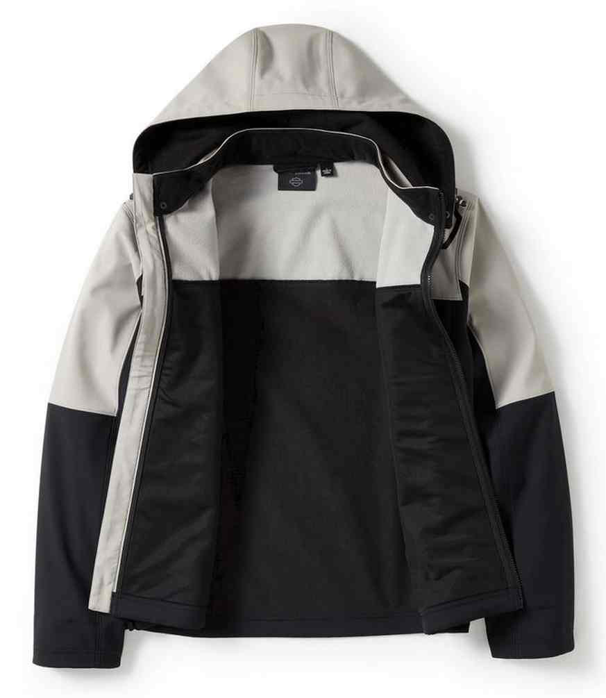 Giacca softshell idrorepellente da uomo Harley-Davidson® Willie G Skull, Realizzata con materiali antivento. Realizzata con materiali idrorepellenti. Realizzata in pile Polar 100% poliestere pesante. Fodera in tricot di poliestere spazzolato 100%. Fodera del cappuccio in tessuto termico 58% cotone, 39% poliestere, 3% spandex. Chiusura frontale con zip. Tasche scaldamani verticali con chiusura a zip. Inserti a contrasto. Grafiche riflettenti. Cappuccio removibile con zip. Coulisse sul cappuccio e sull’orlo. Polsini a coste. Stampa serigrafica opaca. Stampa serigrafica riflettente opaca.