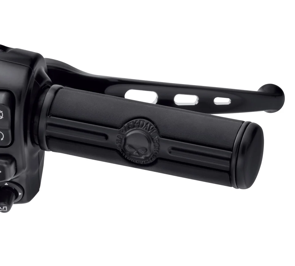 Gli inserti di gomma in rilievo, che creano un effetto di contrasto con il sinistro logo Willie G Skull circondato dalla scritta “Harley-Davidson”, consentono un’impugnatura sicura e il massimo comfort di guida nei lunghi viaggi.