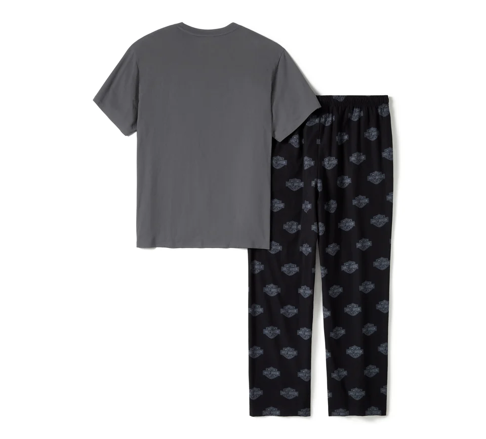 Fatti cullare il sonno da Harley con il completo pigiama Bar & Shield. La blusa è realizzata in morbido tessuto misto cotone/modal, con scollo a coste per preservare la forma. I pantaloncini sono realizzati in comoda flanella di cotone e sono provvisti di coulisse. Questo pigiama da uomo è rifinito con un motivo custom integrale sui pantaloni e con lo stemma Bar & Shield sulla blusa.