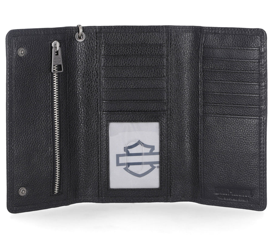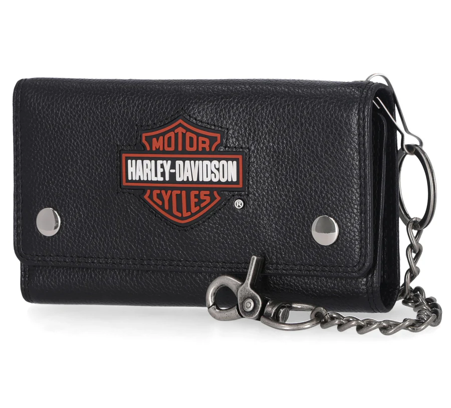 Il portafoglio in pelle da uomo Harley-Davidson con catena e toppa Bar & Shield è realizzato in vera pelle di alta qualità per garantire resistenza e un look classico. È inoltre dotato di protezione RFID per proteggere i tuoi dati personali. Il logo applicato in gomma aggiunge un tocco di stile e la catena staccabile consente di aggiungere accessori versatili. Con dimensioni di 18 x 10 cm, questo portafoglio è la combinazione perfetta tra funzionalità e stile.