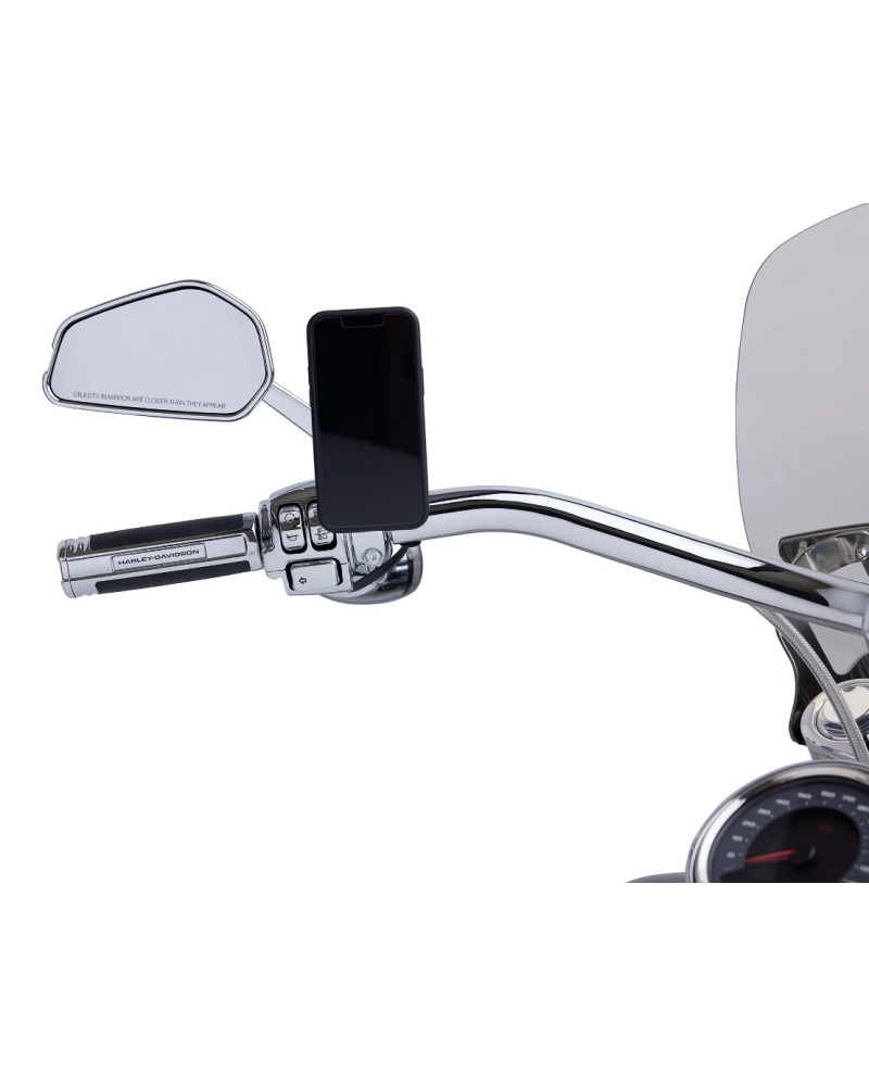 Questo sistema di supporto per telefono è certificato da Harley-Davidson per resistere agli stessi test a cui sono sottoposti tutti i nostri accessori per moto, tra cui esposizione ai raggi UV, test di adesione, test di vibrazione e ciclo di aggancio e persino carichi aerodinamici. Harley ha progettato questo supporto in modo eccessivo per garantire che il telefono rimanga collegato alla moto.
